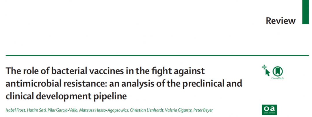 本综述于2022年12月14日在线发表在国际知名期刊《Lancet Microbe》,标题为《The role of bacterial vaccines in the fight against antimicrobial resistance: an analysis of the preclinical and clinical development pipeline》。文章第一作者是来自伦敦帝国理工学院感染病学系的Isabel Frost,通讯作者是来自全球抗生素研究与发展合作组织的Peter Beyer。