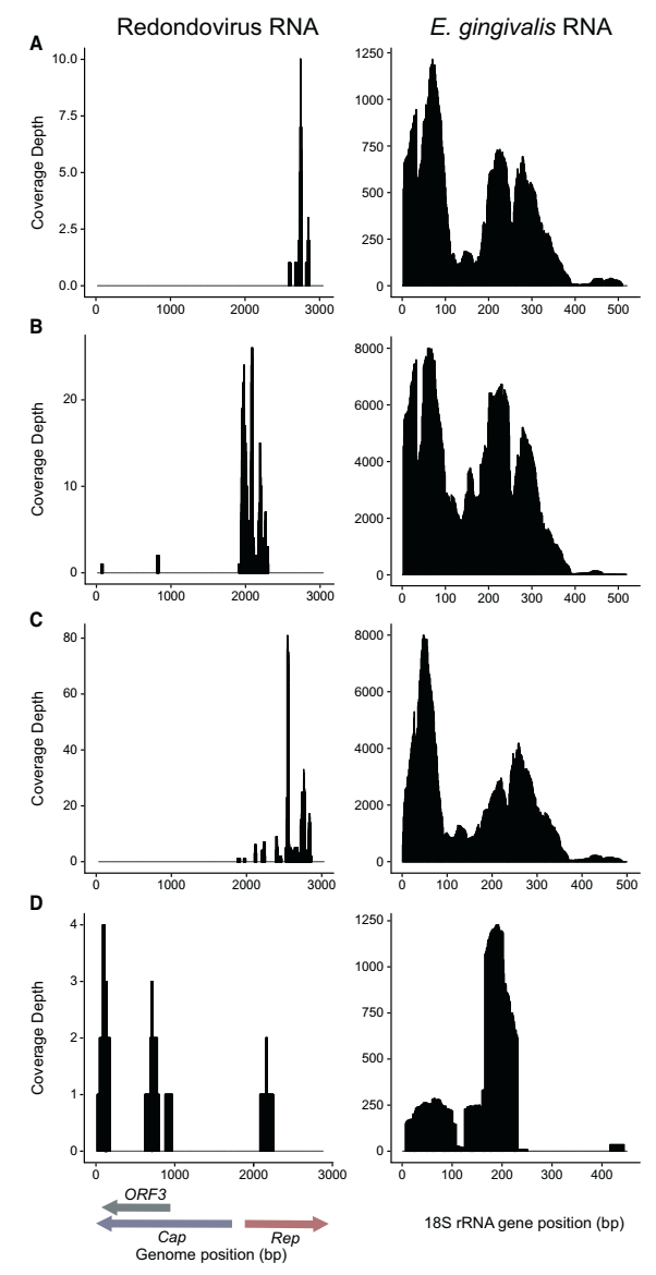 ▲Figure 7. Detection of redondovirus and E. gingivalis RNA in metatranscriptomic datasets