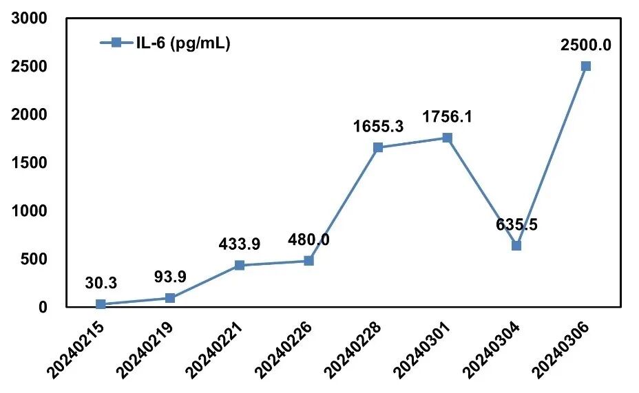 图2c 住院期间白介素6变化(参考范围0-10 pg/mL)