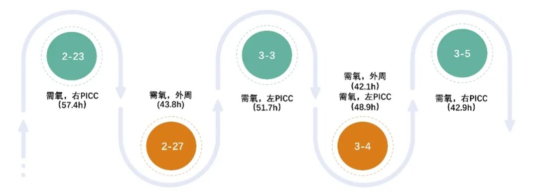 患者入院后经CLAG 化疗方案预处理。2月19日于异基因造血干细胞回输第1天出现咽痛及阴囊疼痛,体温最高37.5℃;2月21日回输第3天出现明显口腔黏膜糜烂疼痛,阴囊多个痛性结节,体温最高38℃,男科超声未见明显异常;2月23日回输后第5天出现黏膜损伤加重,体温最高38.2℃,抽取的血培养回报危急值为真菌(首次报阳),血mNGS回报为茄病镰刀菌(reads数32)。患者住院期间多次血培养危急值回报为真菌,报阳时间轴见图1。