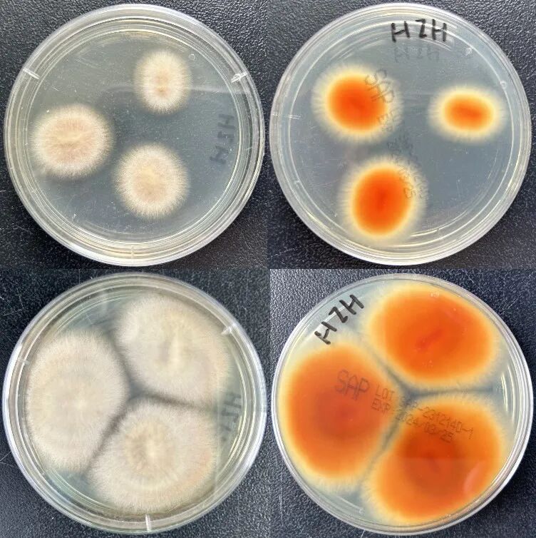 图3f SDA,28℃,3d(上1:正面,上2:反面)和5d(下1:正面,下2:反面)