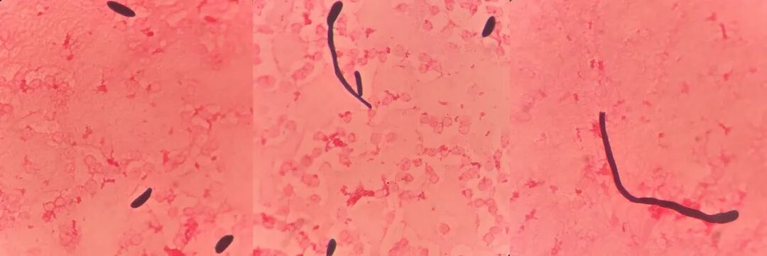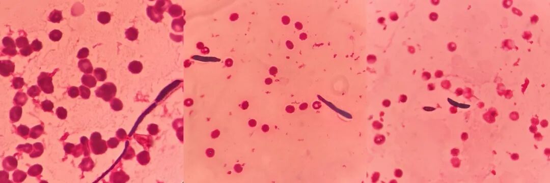 图3a 血培养标本革兰染色×1000镜下孢子和菌丝