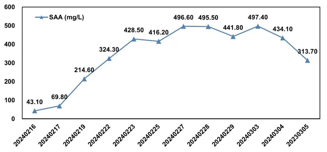 图2d 住院期间血清淀粉样蛋白变化(参考范围0-10 mg/L)