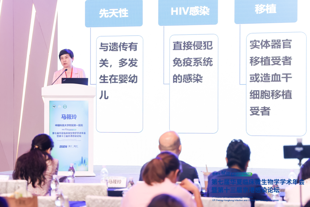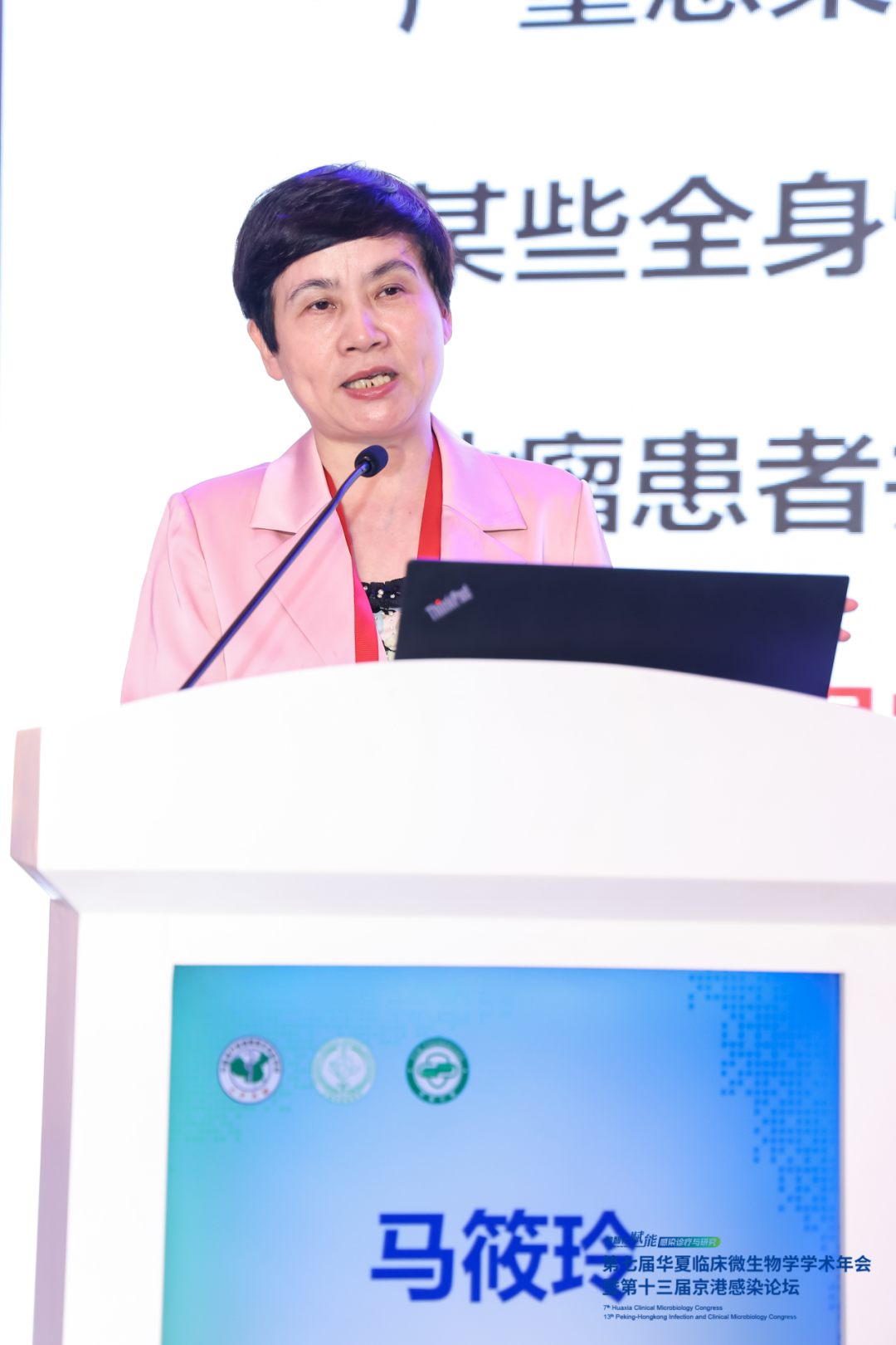 第四位讲者是一级主任医师(二级教授),博士研究生导师、国务院特殊津贴专家中国科技大学附属第一医院、感染病检验诊断中心主任马筱玲教授,马教授报告的题目是《免疫功能低下患者感染诊断要点及标准化报告共识》。