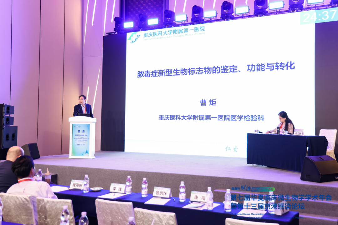 第二位讲者是国家万人计划科技创新领军人才、国家优秀青年基金获得者、重庆医科大学附属第一医院医学检验科主任、青年翘楚曹炬教授。曹教授的讲座题目是《感染标志物的研发及应用》。