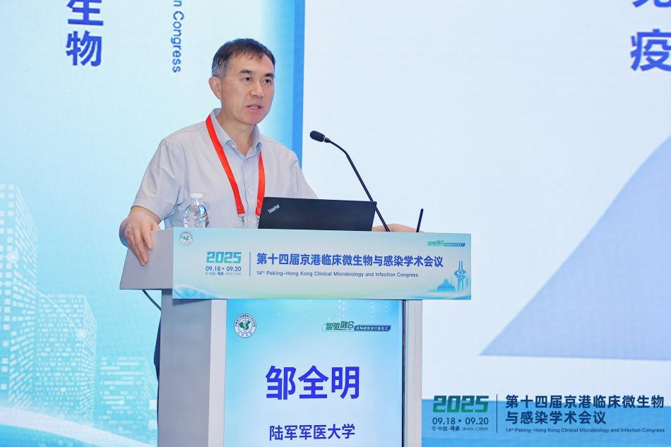 特邀报告的首位讲者是中国人民解放军陆军军医大学邹全明教授。邹教授以《交叉融合推动医院感染细菌疫苗研究与转化》为题,分享了团队在“超级细菌”感染防控和疫苗研发方面的重要成果。