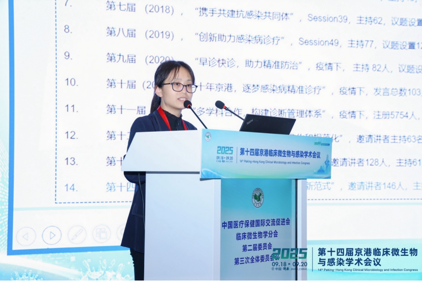 分会秘书长王晓娟进行2025年度工作总结报告,从组织建设、学术活动、标准制定等方面全面回顾分会工作。现有的品牌学术活动中,第二届华夏肺炎大会在重庆举办,吸引1148人线下参会,设置103个议题,邀请20余位国际专家参与,下一届定于长沙举办。第十四届京港感染论坛以“智驱融合:重构感染诊疗新范式”为主题,收到796篇论文,注册人数2236人,设置23个学术板块,影响力持续提升。在组织标准与共识修订方面,王辉教授今年牵头修订《抗菌药物敏感性试验的技术标准》《临床微生物学检验标本的采集和转运》两项行业标准,持续推进CRE专家共识的撰写与宣贯。