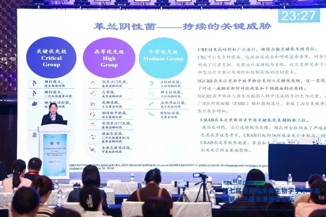 接下来,四川省医学科学院·四川省人民医院喻华教授就“CLSI药敏分级报告的可行性与难点”这一话题展开了报告。2023年抗微生物药物敏感性试验标准进行了更新,CLSI M100提出创建个性化测试和报告策略的倡议。与基本测试和报告相比,选择性报告限制了不必要的测试和报告;级联报告则更为精细,要求在特定条件下报告,如耐药性存在时。然而,选择性报告可能导致抗菌药物耐药监测数据的偏差,级联报告对监测的影响在不同抗菌药物和病原体组合中表现出不同的特点。喻教授指出,药敏分级报告对于改善临床实践和抗菌药物使用决策具有重要意义,需进一步研究,提高药敏分级报告的认知度和利用率。
