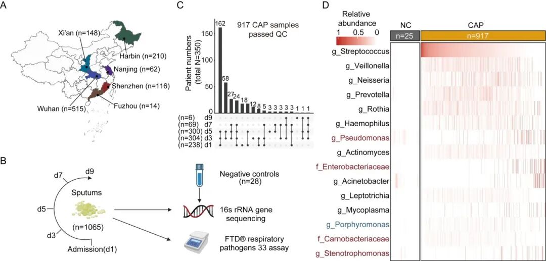 图1. 队列设计和痰液微生物组成