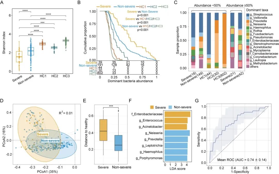 图3. 不同严重程度的 CAP 患者与健康人之间痰液微生物组差异