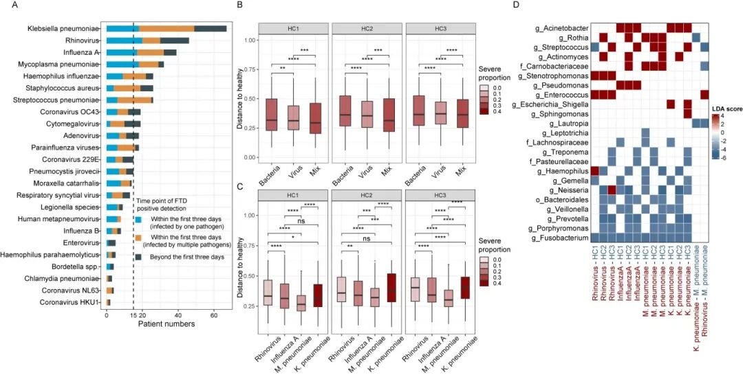 图5. 感染不同病原体患者的微生物组特征