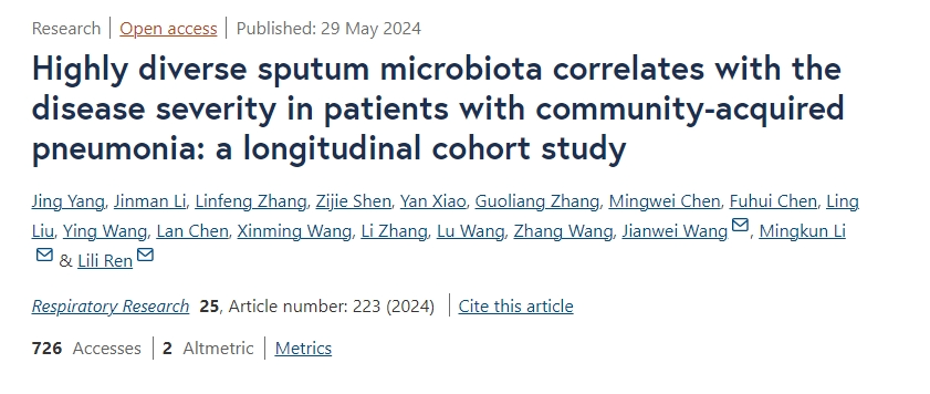 背景:人体呼吸道微生物组在维持肺部生态和免疫稳态中起关键作用,影响肺部健康和对病原感染的易感性。在新冠大流行之前,包括社区获得性肺炎(Community-acquired pneumonia, CAP)在内的下呼吸道感染是全球造成年人口死亡的第四大病因。尽管病原感染是CAP的主要原因,但只有不到50%的患者中能够检测到特定致病微生物。已有研究发现,CAP患者的呼吸道微生物组比健康人群多样性低,且富含致病菌,微生物可能通过调节免疫系统影响肺炎严重程度。然而,现有研究主要集中在高风险群体,样本量小且多为横断面研究,未能全面揭示免疫正常成年人中的情况。