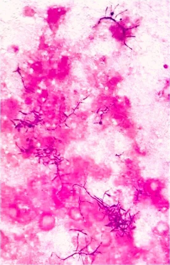诺卡菌感染的临床表现及影像学表现缺乏特异性,易误诊。该病诊断的关键是病原学检查,主要依据分离培养,诺卡菌生长缓慢,因此怀疑诺卡菌感染的患者,实验室应当延长培养时间,并加强涂片检查,以提高阳性率。