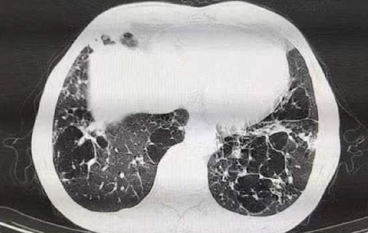 肺诺卡菌病为机会性感染,患者多伴基础疾病。该患者有5年高血压病史,且咳嗽咳痰十余年,近期出现咳嗽咳痰加重并伴有咯血,影像学检查提示慢支,肺气肿,双肺下叶感染,实验室检查血沉和降钙素原轻度升高,都是诺卡菌感染的危险因素。患者肺泡灌洗液中发现大量线团样的菌丝体,结合患者病史与临床表现,以及影像学特征,可诊断为肺诺卡菌病。口服莫西沙星抗流感嗜血杆菌,口服复方新诺明治疗诺卡菌,患者病情好转出院,嘱口服复方新诺明定期复查,12月底到复查CT,提示肺部感染已完全恢复。