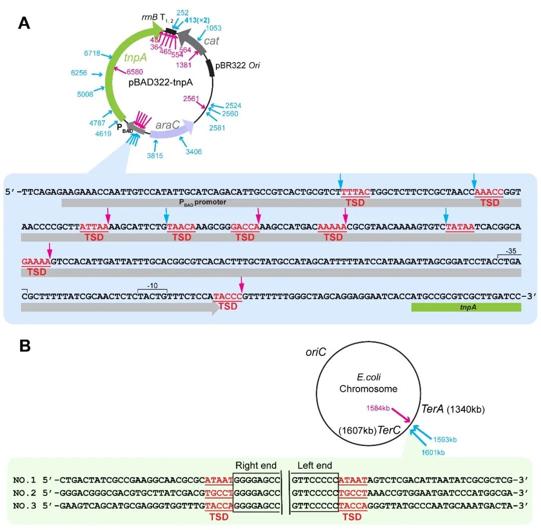 为了评估转座子靶位的整体偏好性(偏好插入质粒或染色体),作者通过自主设计的mating-in转座实验发现,91%转座活动均插入到质粒上,复制起始点和启动子区域是插入热点,而染色体上的转座插入均发生在DNA复制终点。以上结果表明,Tn1721对质粒和染色体DNA复制终点表现出明显的偏好性。