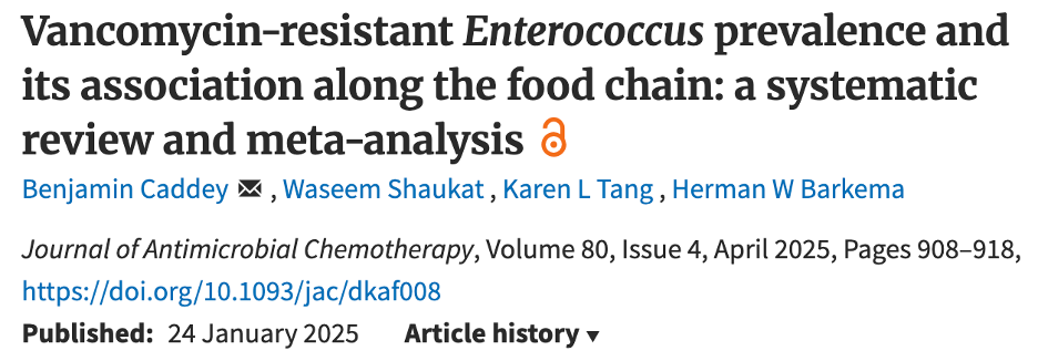 尽管欧洲在20世纪90年代突然停止使用avoparcin, VRE仍然在全球畜牧业中被持续检测到,包括在畜牧业工人和动物性食品中。Caddey及其同事于今年一月发表的一项系统评价和荟萃分析,估算了畜牧业、动物源性食品及人体中VRE定植的流行率,强调了“整体健康”(One Health)方法在抗击VRE中的重要性。在这项包含54项研究的系统评价和荟萃分析中,34项来自欧洲,8项来自非洲,8项来自亚洲,4项来自北美。屎肠球菌(E. faecium)在所有人类亚组中至少占VRE菌种的50%,在猪群亚组中占45%,在家禽亚组中占58%。