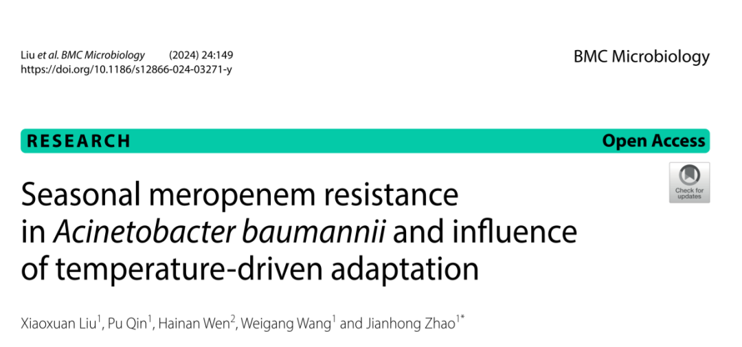 碳青霉烯类抗生素是临床治疗多重耐药革兰阴性菌感染的“最后防线”。然而,鲍曼不动杆菌(Acinetobacter baumannii)对碳青霉烯类的耐药性日益严峻,已被世界卫生组织(WHO)列为“亟待研发新药”的耐药菌之一。近日,河北医科大学第二医院赵建宏教授团队在BMC Microbiology杂志发表题为Seasonal meropenem resistance in Acinetobacter baumannii and influence of temperature-driven adaptation的研究成果,在系统监测和实验研究基础上,揭示了鲍曼不动杆菌耐药性的季节性波动及其低温适应的分子机制,为理解细菌适应环境与耐药性演化之间的关联以及进一步寻找临床控制该菌的感染提供了新视角。